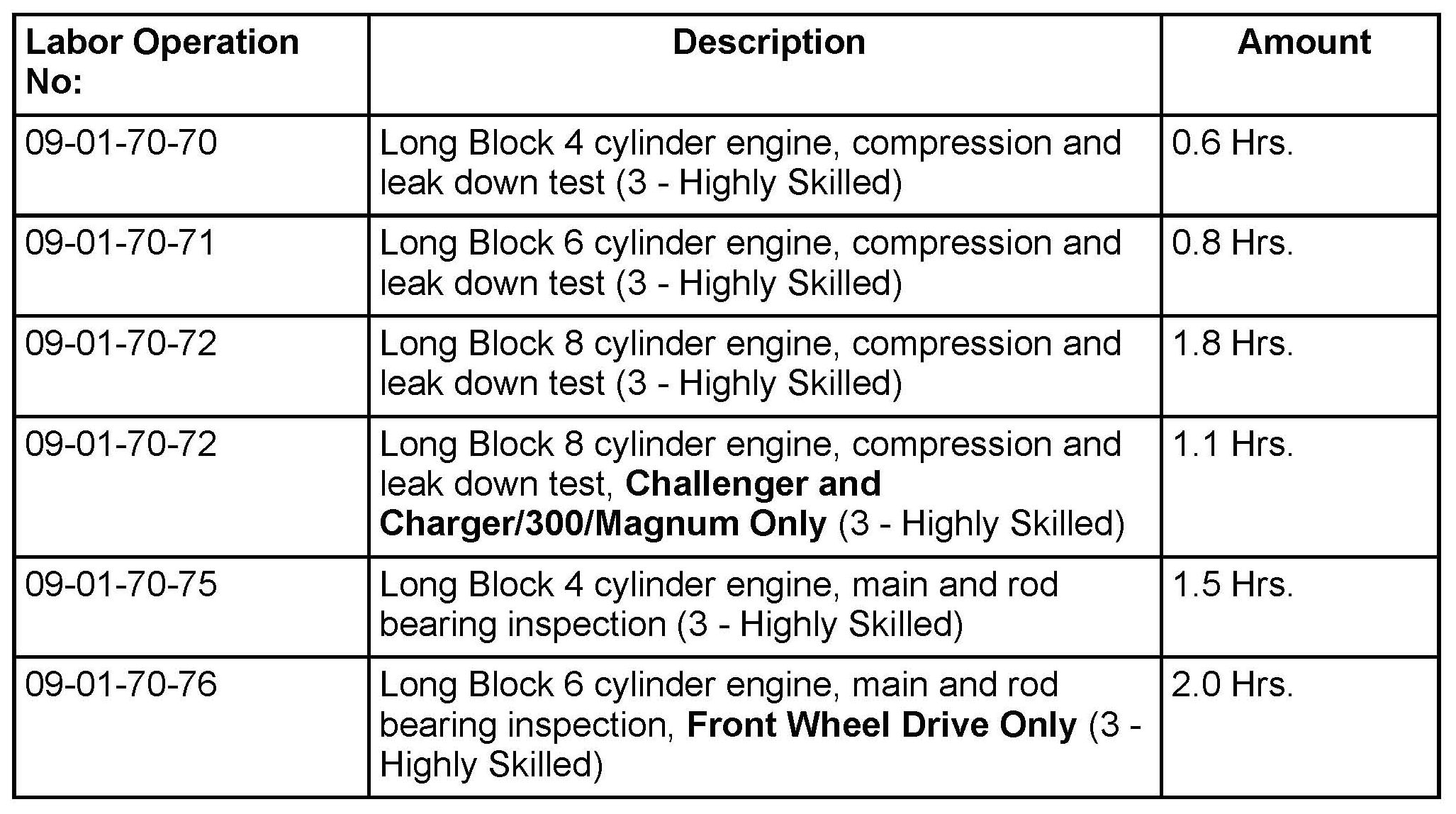 These labor operation numbers are only to be used when repair exceeds 70% of the cost of engine long block assembly replacement. Also, these labor operation numbers are to be used in conjunction with a corresponding primary labor operation number.