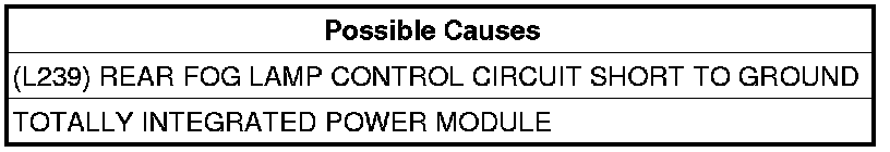- Repair the (L239) Rear Fog Lamp Control circuit for a short to ground condition.