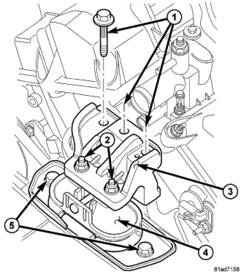 45. Remove 3 right Engine mount bolts.