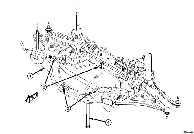 4. Install stabilizer with isolators and retainers onto cradle. Front Stabilizer Bar - Installation