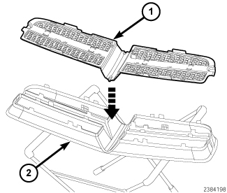 1. Position the new grille (1) onto the grille surround (2) and seat fully.