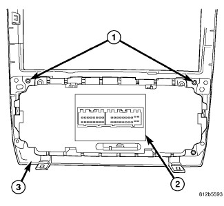 1. Position the A/C-heater control (2) into the instrument panel center bezel (3).