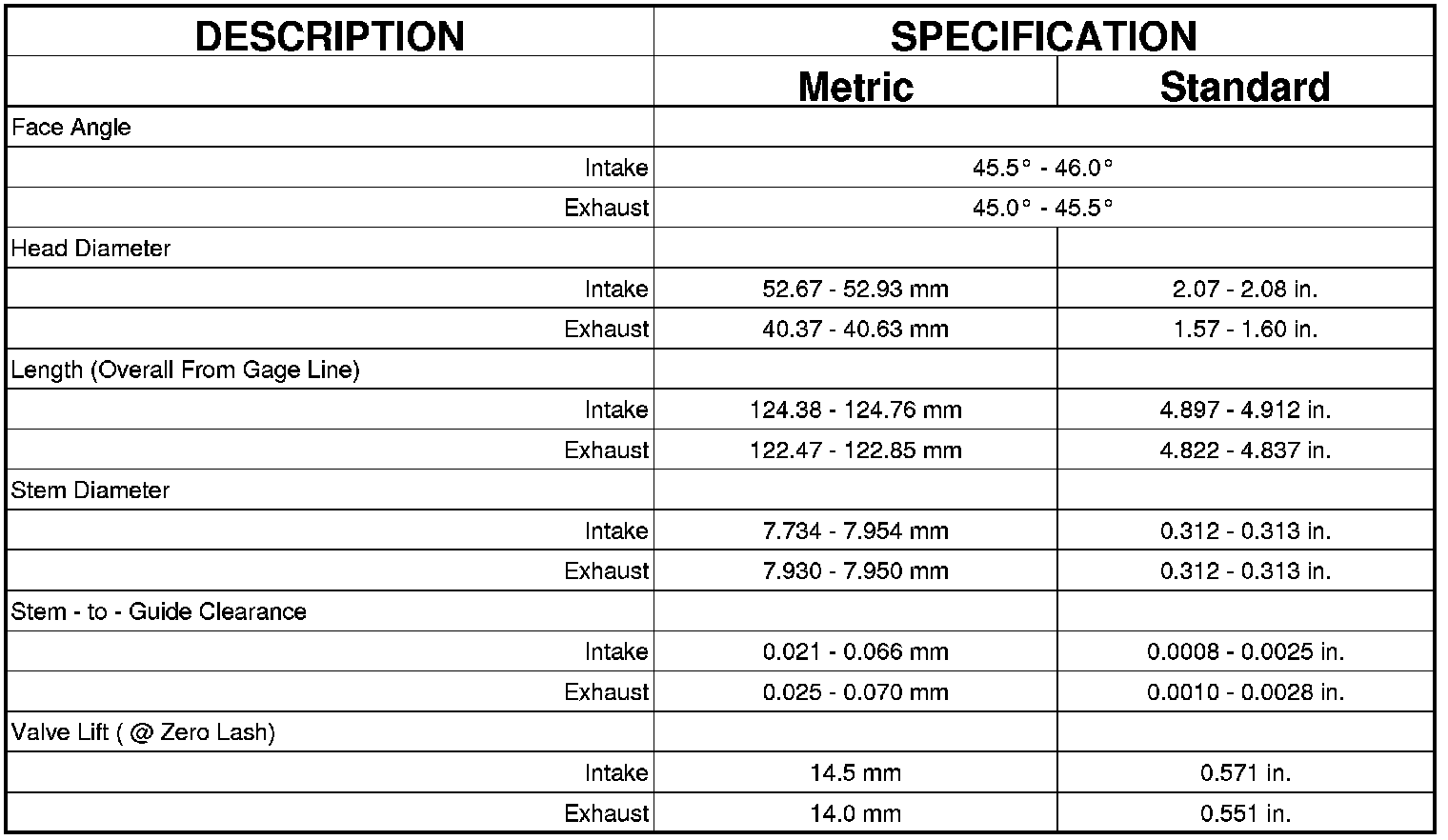 Engine Specifications