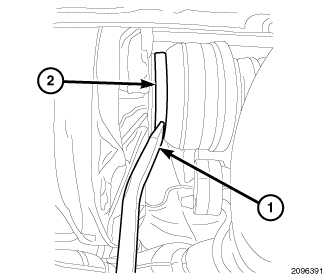 9. Remove the front mount bolt cover (1) located at the top of the axle carrier (2).