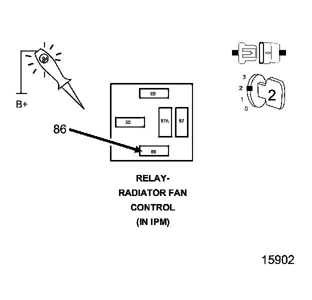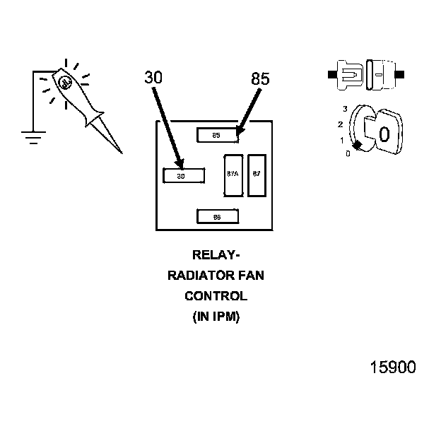 3. Using a 12 Volt test light connected to battery voltage, check the (N24) Radiator Control Relay Output circuit.