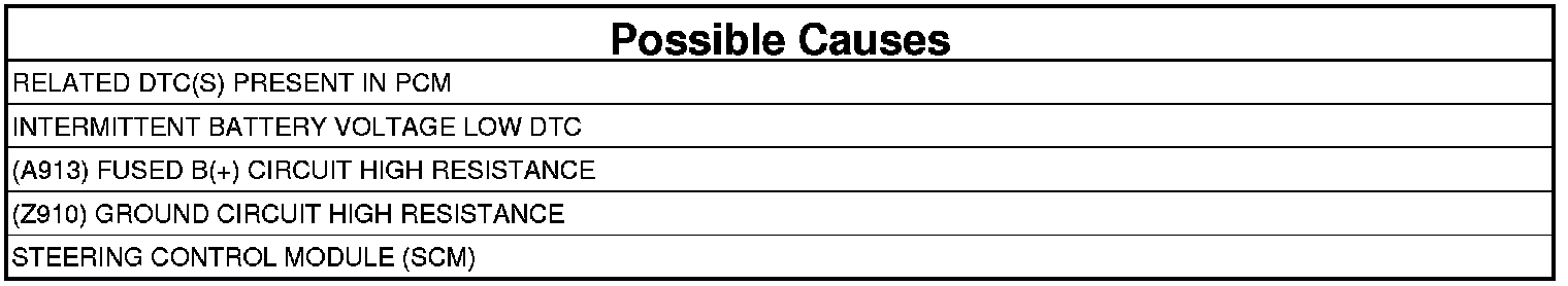 If the voltage to the Steering Control Module (SCM) is below 8.5 volts for more than one minute.