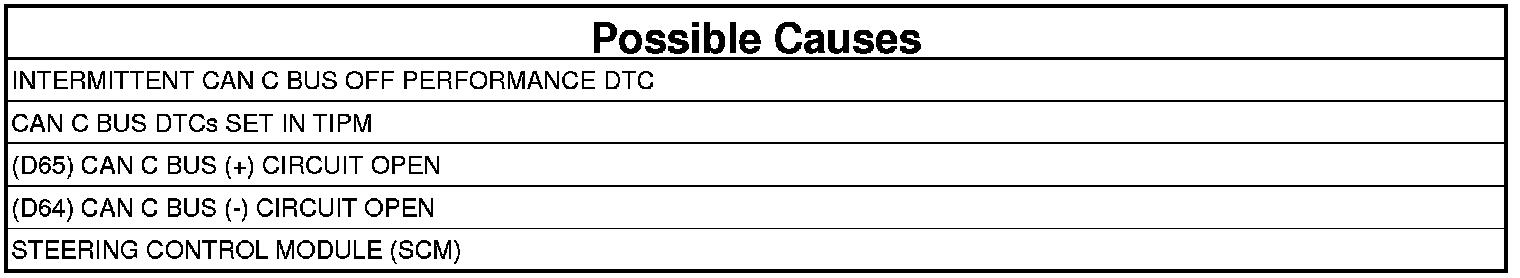 - Repair the (D65) CAN C Bus (+) circuit for an open.