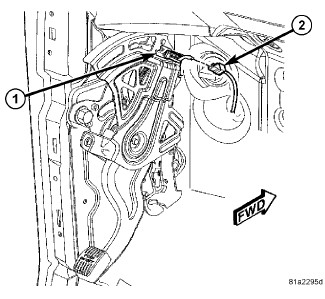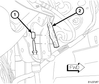 a. Connect front parking brake cable strand (1) to cable connector (2) secured in retaining fork.