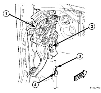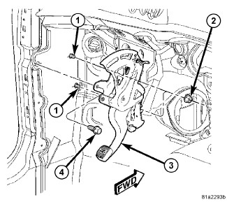1. Install parking brake lever (3) over mounting studs (1).