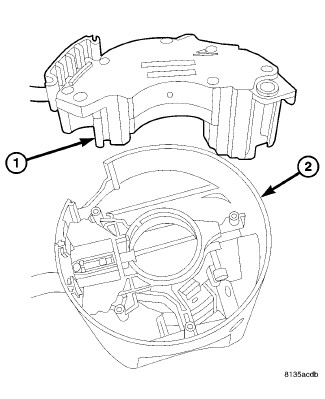 8. Install the SCCM on the steering column, Steering Column Control Module - Installation and tighten the one clockspring screw (1) that was left loose.