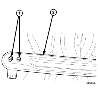 7. Install tunnel reinforcement (2) and nuts (1). Tighten nuts to 25 Nm (215 in. lbs.)