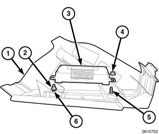 1. Slide the Drive Train Control Module (3) on the mounting stud (6) and over mounting stud (5).