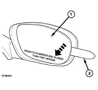 1. Position the mirror glass (1) so that it is facing in toward the vehicle as far as possible.
