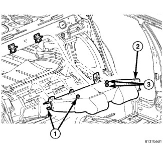 2. Remove the four nuts (1) and (3) attaching seat back.