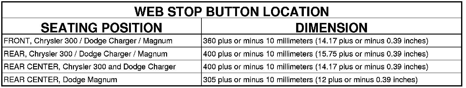 2. Find the appropriate dimension in the Web Stop Button Location table. Measure and mark that distance (4) in the center of the belt webbing from the point where the webbing is secured to the seat belt lower anchor plate (3).
