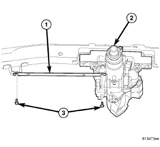 20. If equipped with electronic telescoping column, remove the screws (3) mounting the brace (1) to the steering column (2) and support beam bracket.