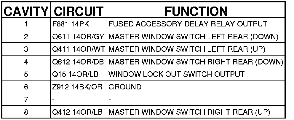 Express Driver Window/Door Lock Switch C1 (Except Base) (Front Door) 8 Way