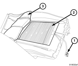 1. Position seat cover (3) on cushion while being careful not to damage heating element (2) and connector, if equipped.