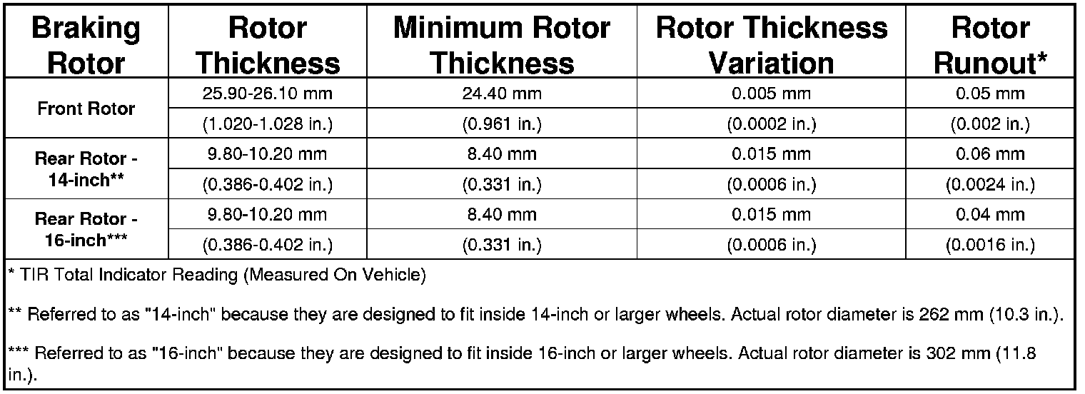 Brake Rotor/Disc: Specifications