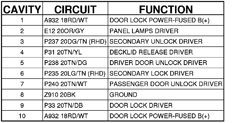 Cluster C1 (Instrument Panel) 10 Way