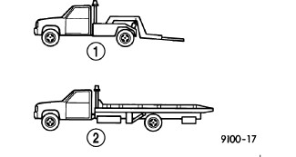 A towed vehicle should be raised until the lifted wheels are a minimum 100 mm (4 in.) from the ground. Be sure there is at least 100 mm (4 in.) clearance between the tail pipe and the ground. If necessary, remove the wheels from the lifted end of the vehicle and lower the vehicle closer to the ground, to increase the ground clearance at the rear of the vehicle. Install lug nuts on wheel attaching studs to retain brake drums or rotors.
