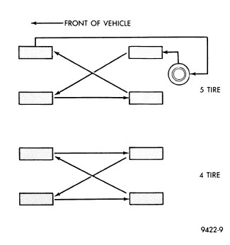 NOTE: Only the four-tire rotation method may be used if the vehicle is equipped with a compact or temporary spare tire.