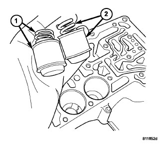 NOTE: Depending on engine application, some accumulators will have two springs, and others will have one spring. The springs are color-coded for application and year.