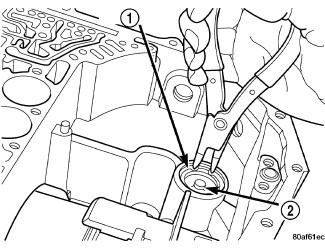 76. Apply an 1/8" bead of Mopar(R) ATF RTV (MS-GF41) (2)to oil pan (1) and immediately install to case.