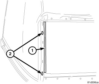 17. Remove plastic clip (1) and pushpins (2) from both sides of opening.