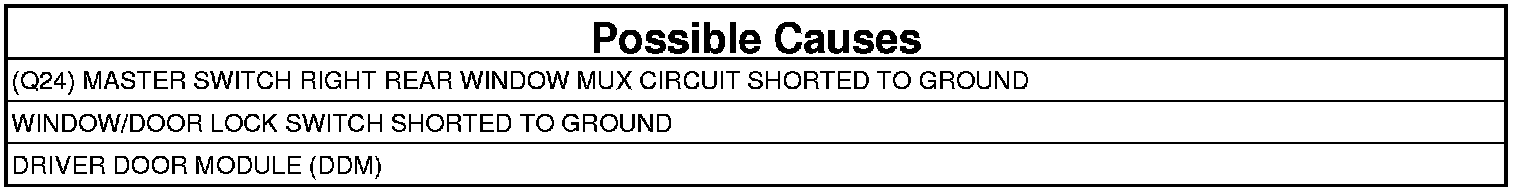 3. (Q24) MASTER SWITCH RIGHT REAR WINDOW MUX CIRCUIT SHORTED TO GROUND