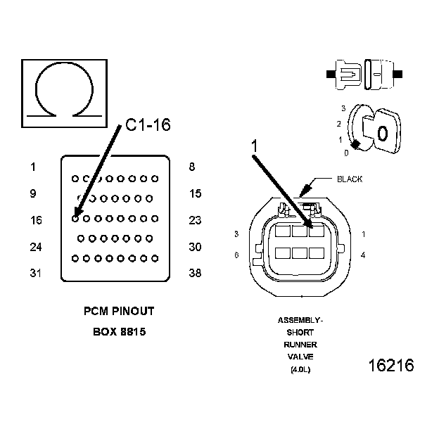 1. Using the wiring diagram/schematic as a guide, inspect the wiring and connectors between the Short Runner Valve Assembly and the Powertrain Control Module (PCM).
