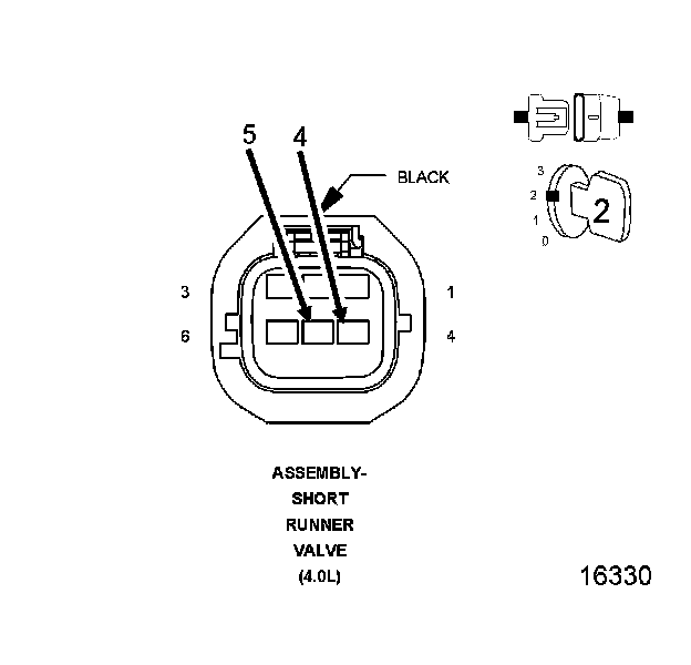 1. Using the wiring diagram/schematic as a guide, inspect the wiring and connectors between the Short Runner Valve Assembly and the Powertrain Control Module (PCM).
