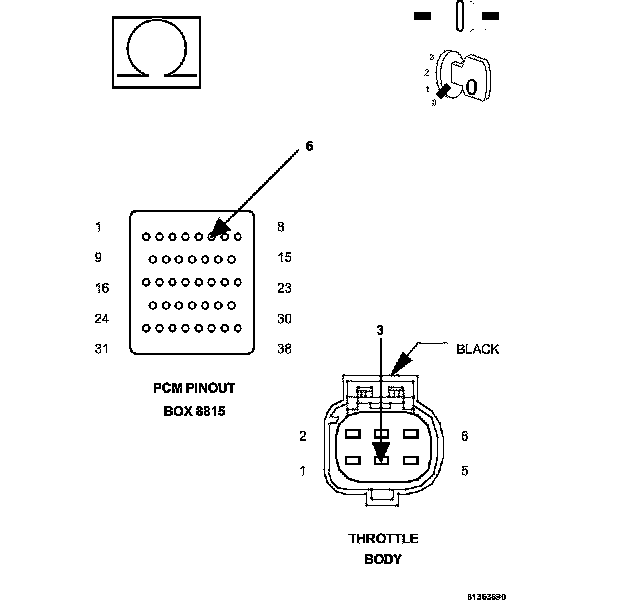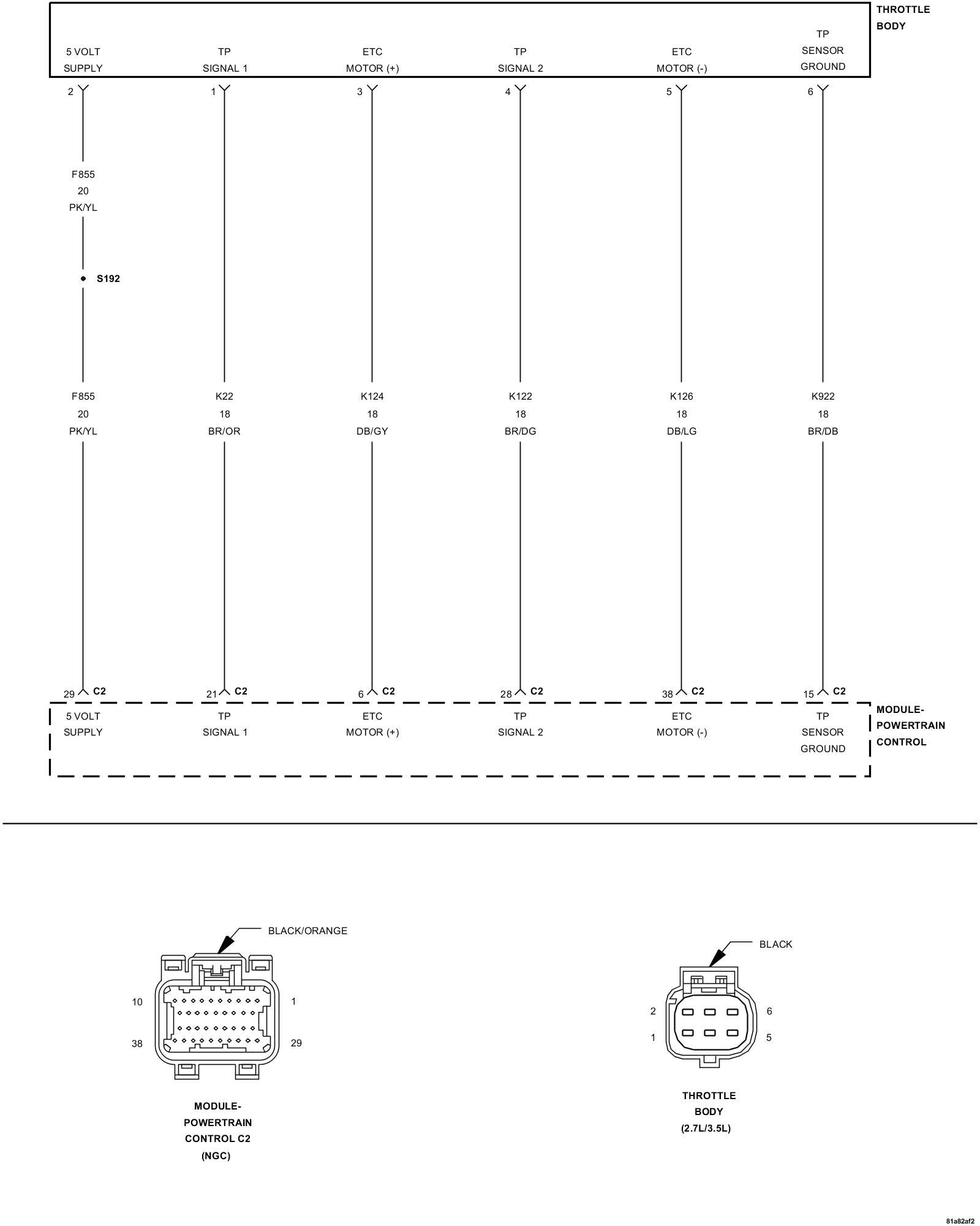 1. Using the wiring diagram/schematic as a guide, inspect the wiring and connectors between the Throttle Body and the Powertrain Control Module (PCM).