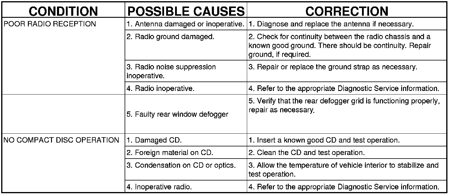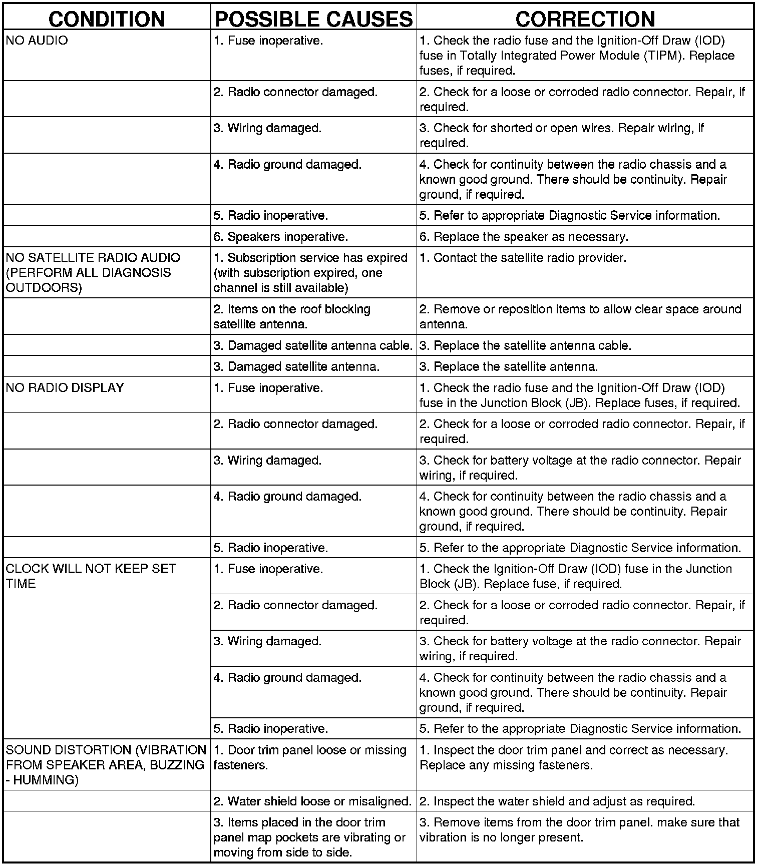 Any diagnosis of the Audio system should begin with the use of the scan tool. For information on the use of the scan tool, refer to the appropriate Diagnostic Service information.