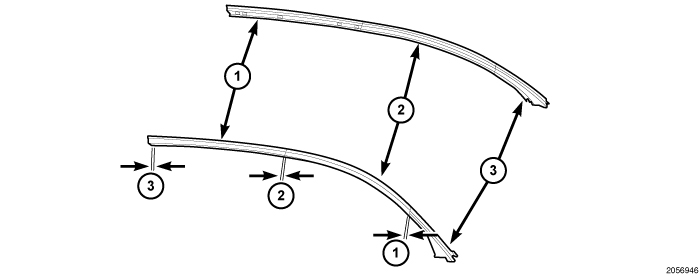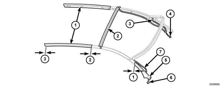 7. Verify the gap measurements of the weatherstrips. Refer to GAP MEASUREMENT - WEATHERSTRIPS.