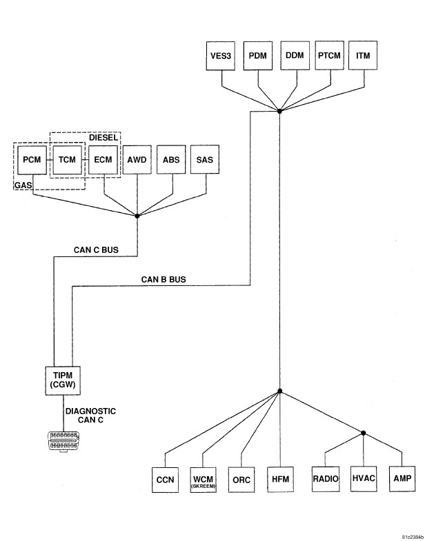 - Disconnect each CAN B Bus module one at a time while observing the resistance to determine if the short is caused by an internal short within a module. Replace the module,, that when disconnected eliminates the short to ground. If the short condition is still present with all CAN B Bus modules disconnected use the Wiring Diagrams to help isolate and repair the (D55) CAN B Bus (+) circuit for a short to ground.