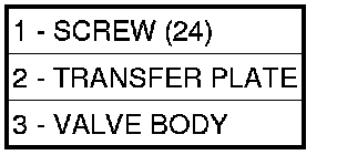 6. Remove Valve Body (3) to Transfer Plate (2) screws (1).