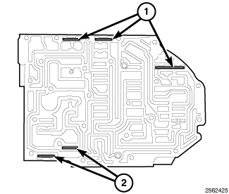 5. Install check balls (1 and 2) into position as shown. If necessary, secure them with petrolatum or transmission assembly gel for assembly ease.