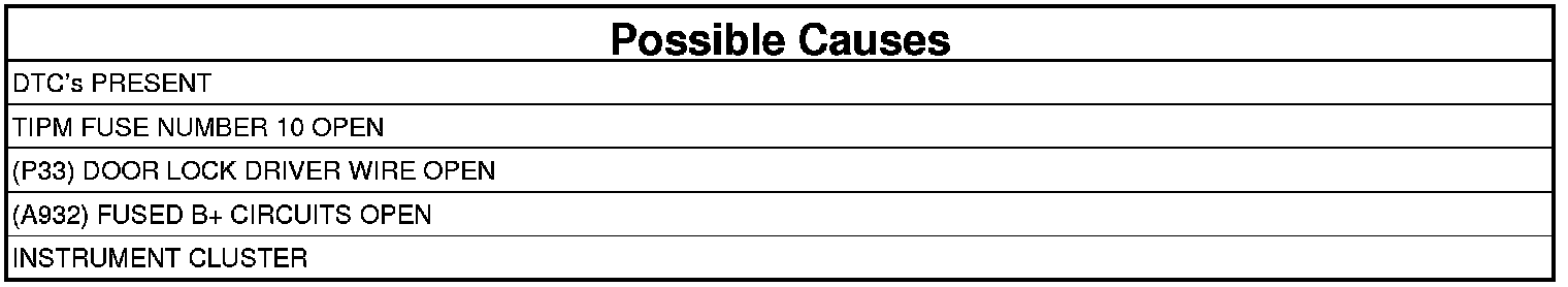 - Repair the (P33) Door Lock Driver wire for an open. Check the other Driver circuits for opens also.