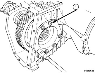 16. Install bearing retainer with a bead of Mopar(R) Silicone Rubber Adhesive Sealant and torque bolts (1) to 28 Nm (250 in. lbs.).