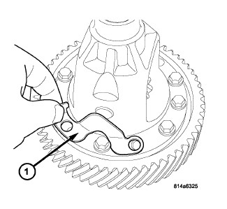 1. Position differential case to ring gear. Install ring gear-to-differential case bolts (1) and draw ring gear into position. Torque bolts to 95 Nm (70 ft. lbs.).