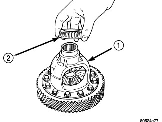 9. Position differential side bearing cone (2) onto differential.