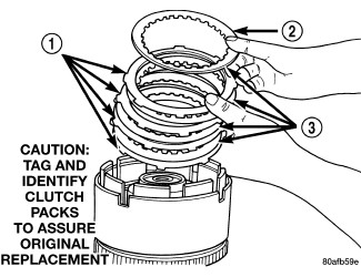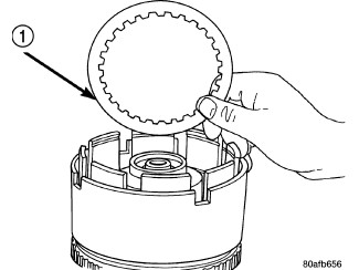 27. Install the OD clutch pack (four frictions/three steels) (1).