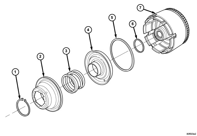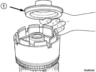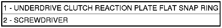 17. Place the OD/UD clutch reaction plate (1)and snap ring into position. The OD/UD clutches reaction plate has a step on both sides. Install the OD/UD clutches reaction plate tapered step side up.