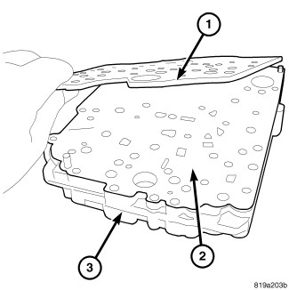 10. Remove the valve body inner gasket and plate (1) from the valve body.