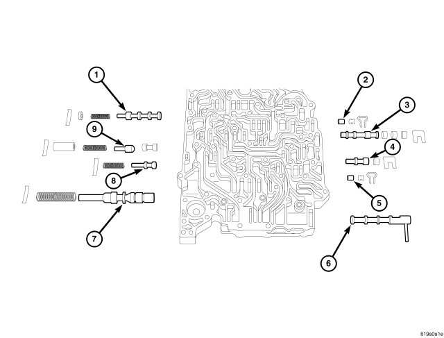 NOTE: The valve body contains some check balls that are pressed into a tapered bore (1). These check balls are not removeable