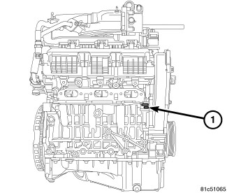 The cylinder block main bearing bore grade codes (1) are located on the left side front of the engine block, just below the cylinder head mounting surface. These grade marks (1, 2, 3, or 4) are read left to right, corresponding to main bearing bore 1, 2, 3, or 4.