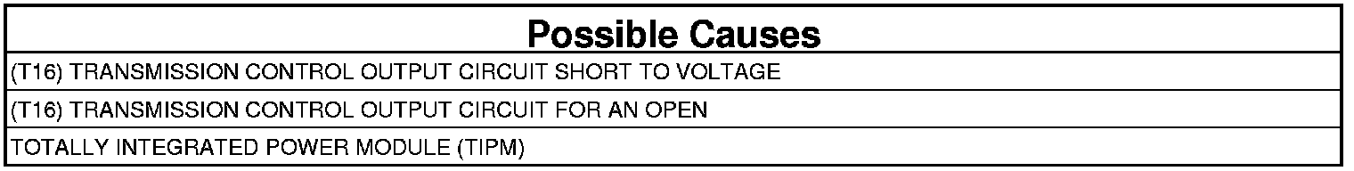 - Repair the (T16) Transmission Control Output circuit for a short to voltage.