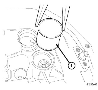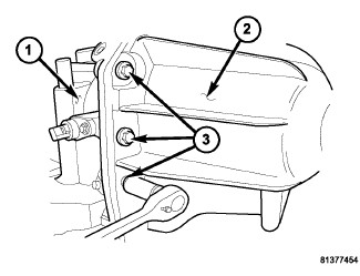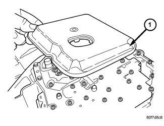 61. Install transmission oil pan (1) with a bead of Mopar(R) ATF RTV.