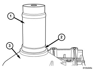 78. Press downward on the staking tool (1) until the staking pin (3) contacts the output shaft nut flange (2).